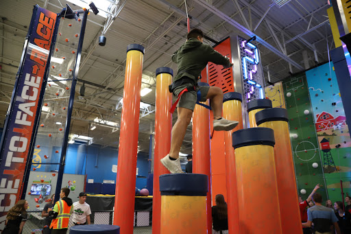 The Open Jump Arena is an expansive trampoline space with raised platforms, a spine, basketball, and expert areas. Kids of all ages can play 3D Dodgeball and Slamball, as well as Mini-Jump for the five-and-under crowd. The Pit is an exciting foam pit where you can jump into airbag pits and more. There is also a Trapeze & Zip Line and a Super Slide. Grip socks are required for these activities, and shoes are typically worn for the Adventure Climb.